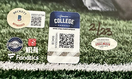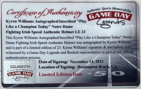 Cole Kmet Signed Notre Dame Fighting Irish Logo Football w/Insc - Beckett W Auth