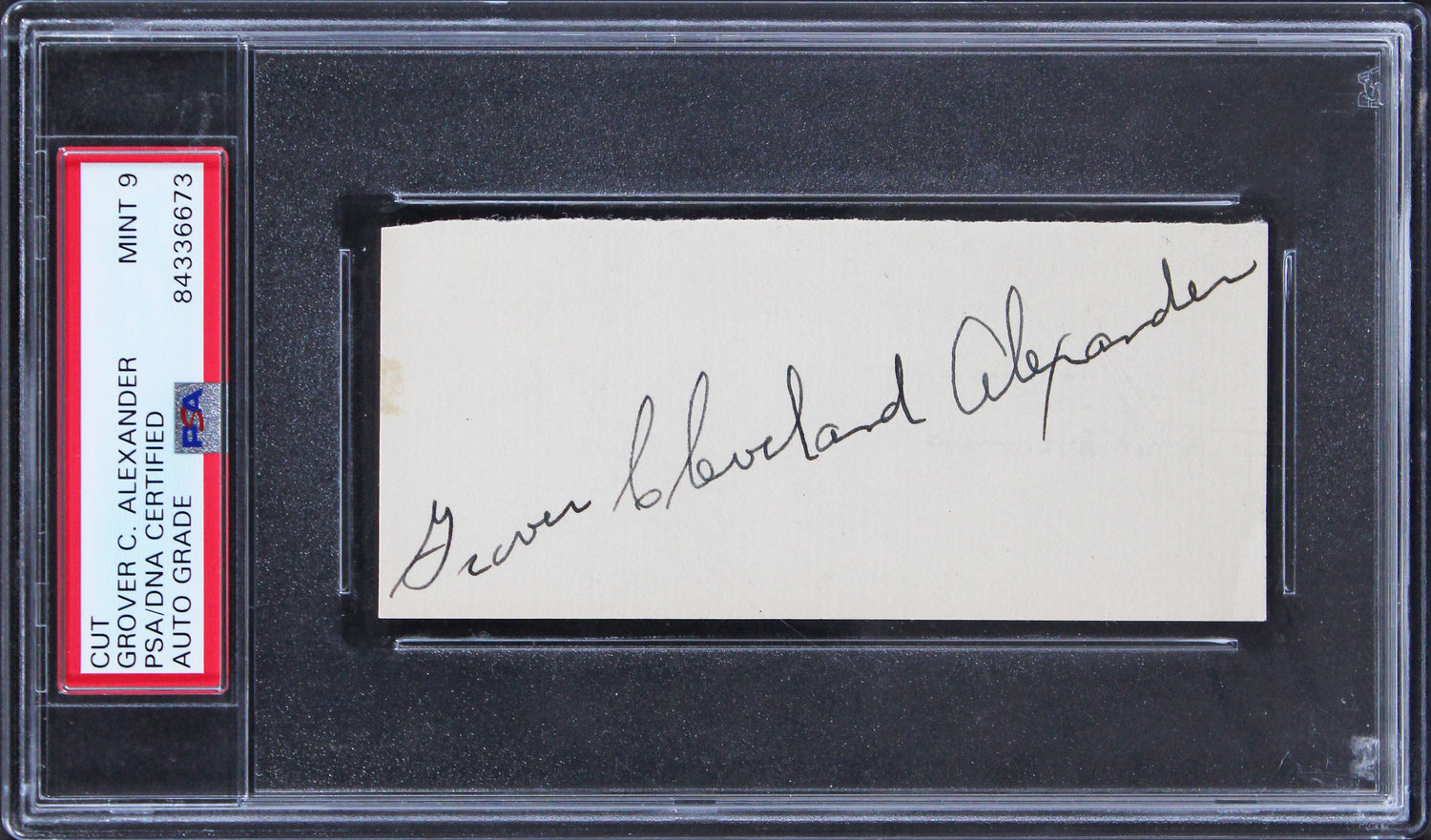Athletics Grover Cleveland Alexander Signed 2x4.5 Cut Signature Auto 9! PSA Slab