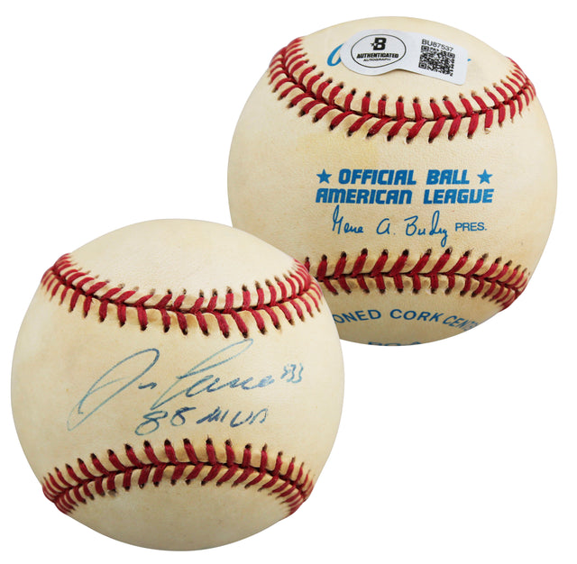 This rare and collectible baseball celebrates one of Major League Baseball’s most electrifying power hitters — Jose Canseco of the Oakland Athletics. Personally autographed by Canseco himself, this official Gene Budig baseball features the special inscription "88 MVP", marking the year he claimed the prestigious American League Most Valuable Player award. A perfect addition for fans of the legendary "Bash Brothers" era or serious memorabilia collectors, this piece captures the essence of late-'80s Athletics dominance and Jose Canseco’s place in baseball history.