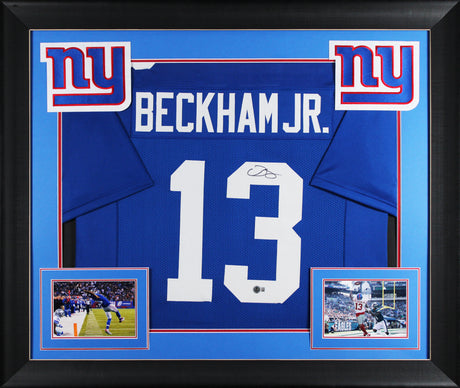 Odell Beckham Jr. Authentic Signed Blue Pro Style Framed Jersey BAS Witnessed