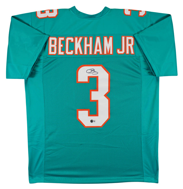 Own a piece of NFL history with this Autographed Teal Pro Style Jersey, personally signed by Odell Beckham Jr. of the Miami Dolphins. This collector's item is a must-have for fans and memorabilia enthusiasts, offering both authenticity and sports legacy in one exclusive piece.