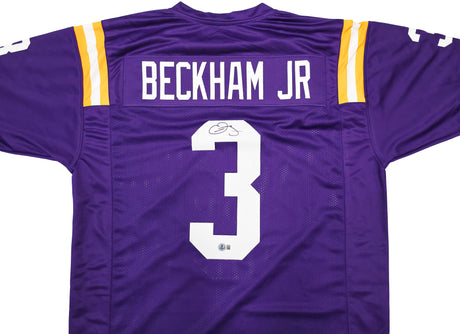 LSU Tigers Odell Beckham Jr. Autographed Purple Jersey Beckett BAS Witness Stock #243262