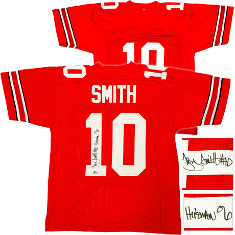 Ohio State Buckeyes Troy Smith Autographed Red Jersey "Heisman 06" Beckett BAS Witness Stock #222843