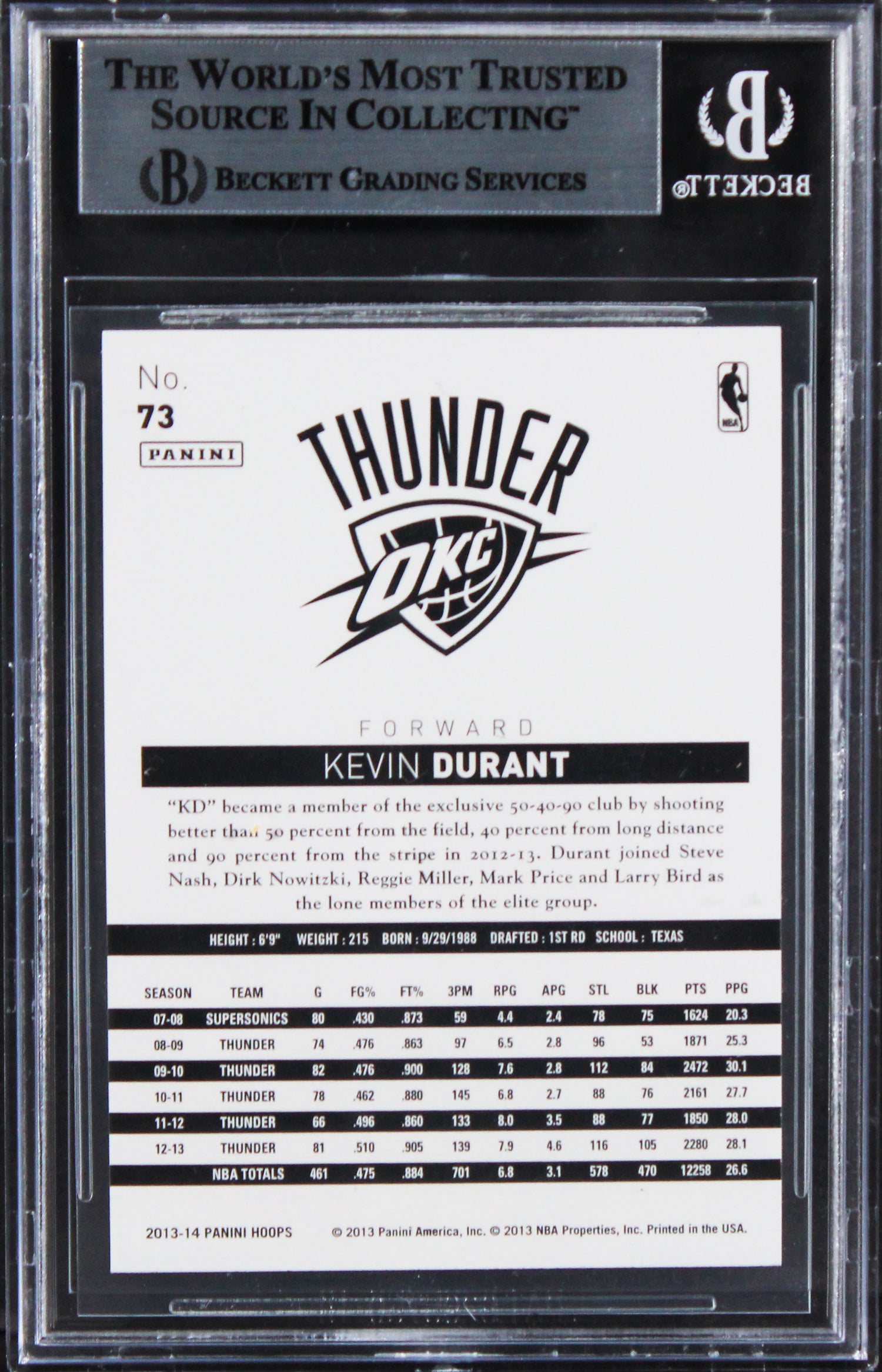 Thunder Kevin Durant Authentic Signed 2013 Hoops #73 Card BAS Slabbed