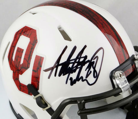 Adrian Peterson Signed Oklahoma Sooners Speed Mini Helmet- Beckett W Auth *White