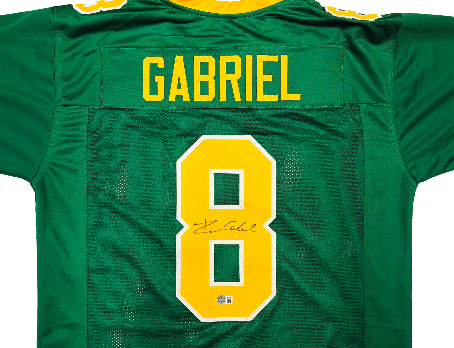 This green custom jersey has been hand-signed by Dillon Gabriel, making it a must-have collectible for devoted football fans and memorabilia enthusiasts. Designed for display, this jersey features high-quality sewn-in name and numbers and is approximately size XL. While it is not an officially branded jersey, it offers an excellent way to celebrate your admiration for Dillon Gabriel's career.
