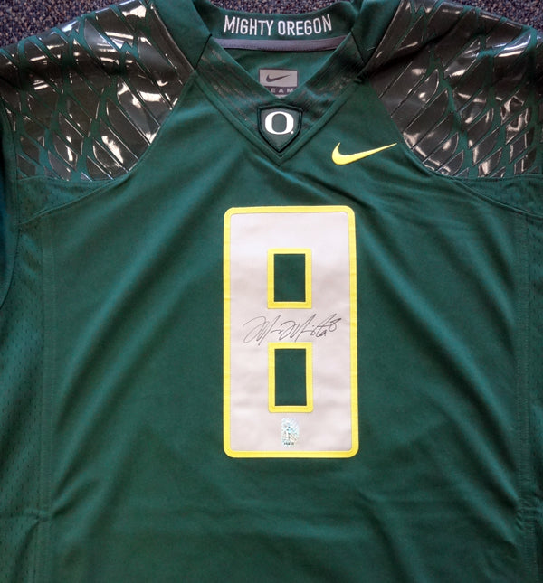 Own a piece of Oregon Ducks history with this Green Nike Oregon Ducks Jersey, hand-signed by Heisman Trophy winner Marcus Mariota. A must-have for any serious collector or Ducks fan, this autographed jersey represents a key era in Oregon football history and Mariota’s legendary collegiate career.