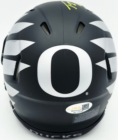 Tez Johnson Autographed Oregon Ducks Matte Black Speed Mini Helmet JSA Witness Stock #256796