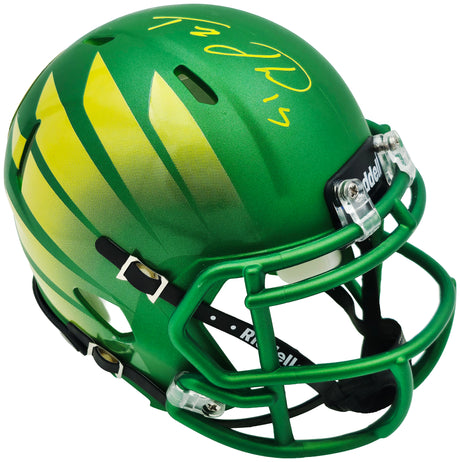Tez Johnson Autographed Oregon Ducks Green Speed Mini Helmet JSA Witness Stock #256798