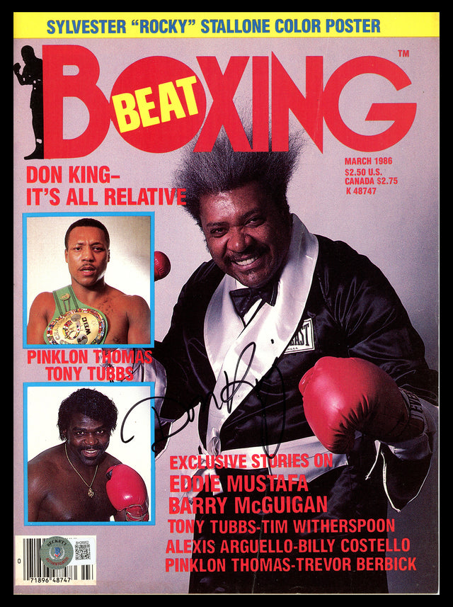 Whether you're a dedicated boxing memorabilia collector or looking for the perfect gift for a sports enthusiast, this Don King autographed Boxing Beat magazine is an incredible find. Secure yours today before it’s gone!