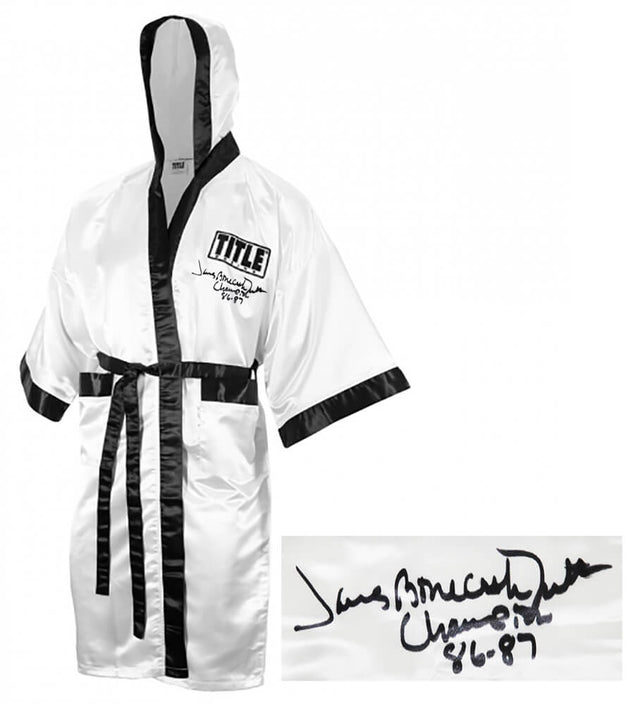James Smith Signed Title White Full Length Boxing Robe w/Bonecrusher, Champ 86-87
