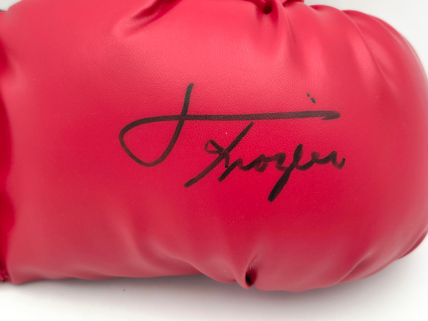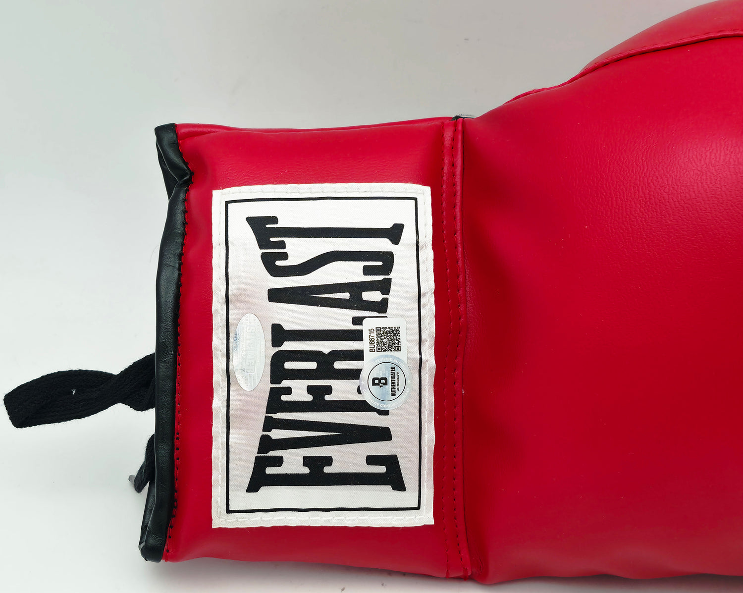 Own a legendary piece of boxing history with this Red Everlast Boxing Glove hand signed by former heavyweight champion Joe Frazier. Known for his fierce rivalries with Muhammad Ali and his relentless fighting style, Joe Frazier remains one of boxing’s most iconic figures. This right-handed glove is more than just a collector’s item—it's a tribute to a Hall of Fame career that helped shape the golden era of boxing. Authenticated by Beckett Authentication Services (BAS), this glove includes their tamper-proof QR Code hologram for guaranteed authenticity, making it a must-have for serious collectors and fans of the sweet science.