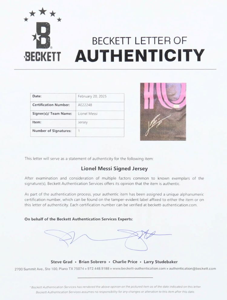 Celebrate soccer greatness with this Lionel Messi signed Inter Miami Adidas soccer jersey—a must-have centerpiece for any serious sports memorabilia collection. This officially licensed Adidas jersey is hand signed by legendary forward Lionel Messi, the global icon widely regarded as one of the greatest footballers of all time. Representing his latest chapter in Major League Soccer, this jersey captures an iconic era as Messi takes the pitch with Inter Miami CF in his U.S. debut season.