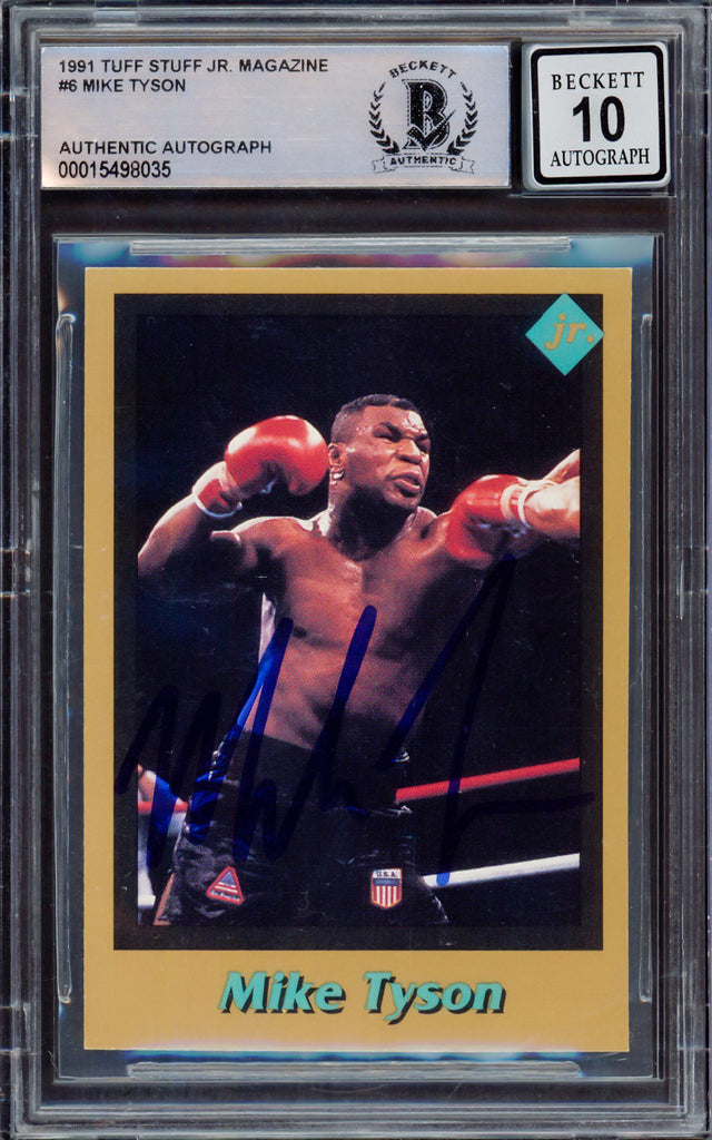 Mike Tyson Autographed 1991 Tuff Stuff Jr. Magazine Card #6 Auto Grade Gem Mint 10 Beckett BAS #15498035