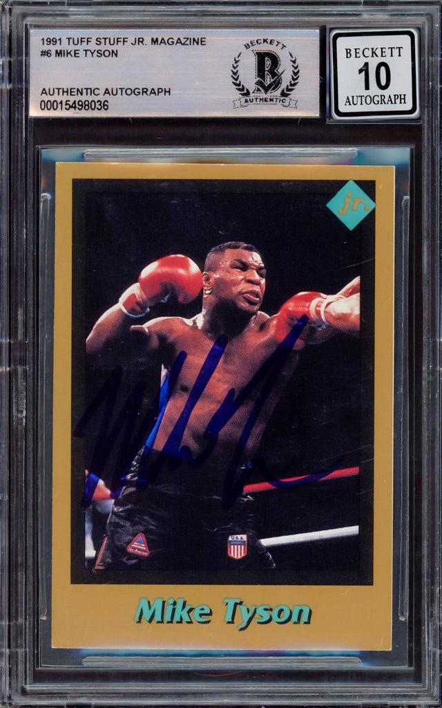 Mike Tyson Autographed 1991 Tuff Stuff Jr. Magazine Card #6 Auto Grade Gem Mint 10 Beckett BAS #15498036