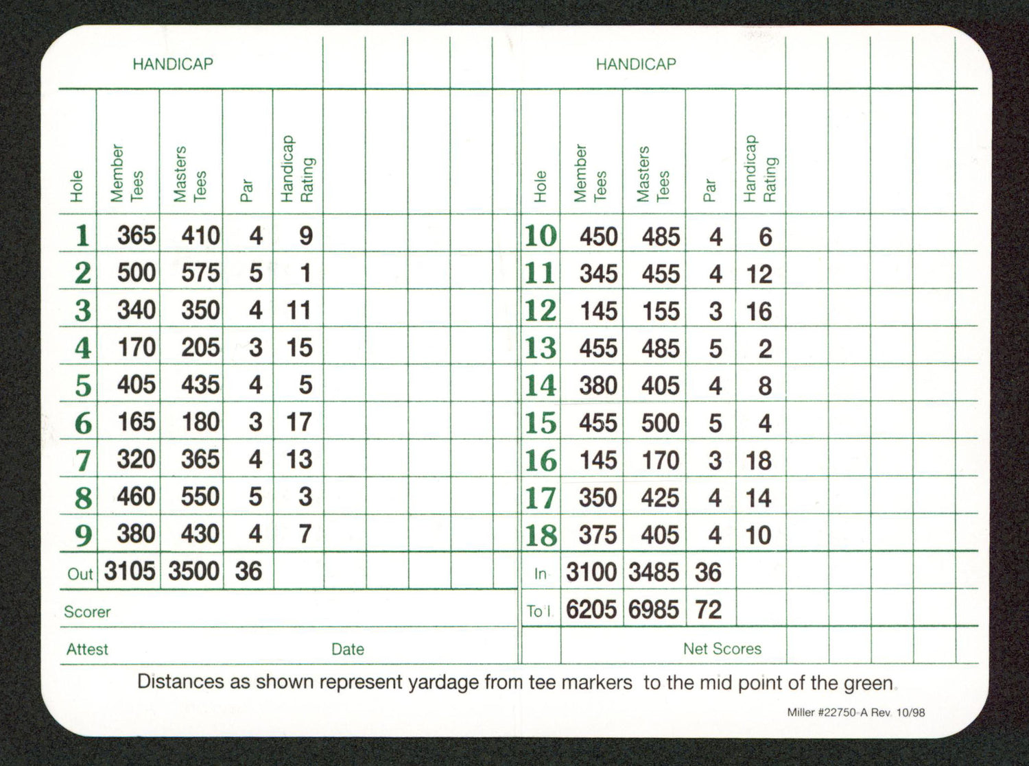 - Official Masters Augusta National Golf Club 3.25x4.75 Scorecard