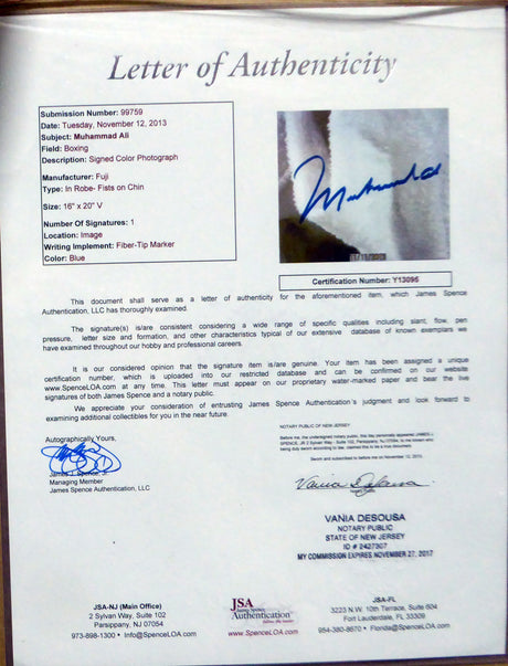 Muhammad Ali Autographed Framed 16x20 Photo JSA #Y13095