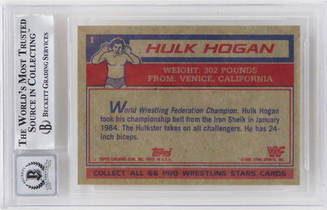 Hulk Hogan Signed WWF 1985 Topps Wrestling Rookie Card #1 (Beckett Encapsulated/ Auto Grade 10)
