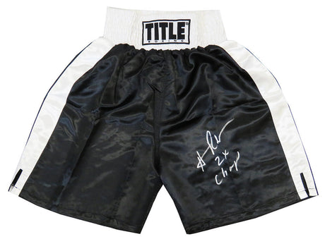 Very low stock (2 units)$109Unit price /UnavailableChris Byrd Signed Title Black Boxing Trunks w/2x Champ