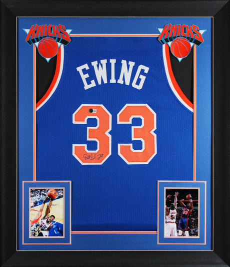 Patrick Ewing Authentic Signed Blue Pro Style Framed Jersey Autographed BAS