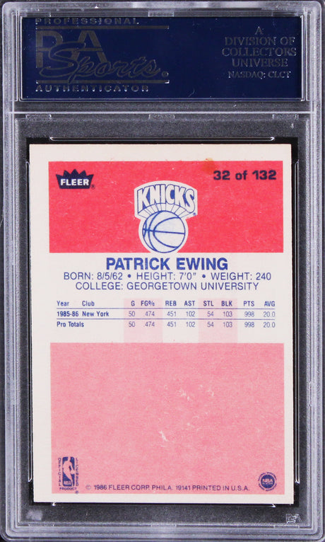 Knicks Patrick Ewing Signed 1986 Fleer RC #32 Card Auto Grade Mint 9! PSA Slab 1