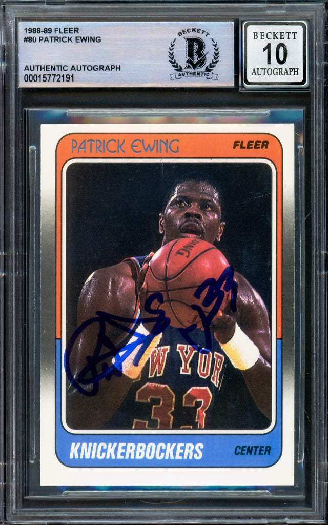 Patrick Ewing Autographed 1988-89 Fleer Card #80 New York Knicks Auto Grade Gem Mint 10 Beckett BAS #15772191
