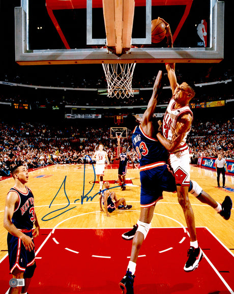 Patrick Ewing Autographed New York Knicks 16x20 Dunk Photo - Beckett W Hologram