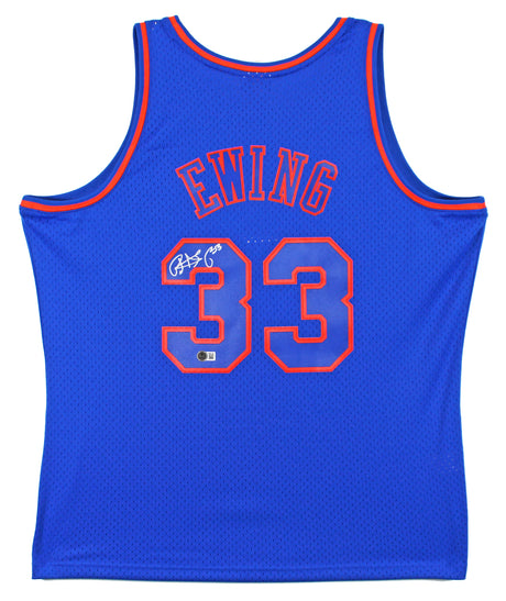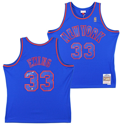 Knicks Patrick Ewing Authentic Signed Blue Mitchell & Ness Jersey BAS Witnessed