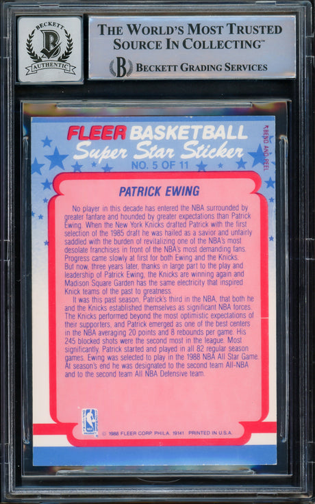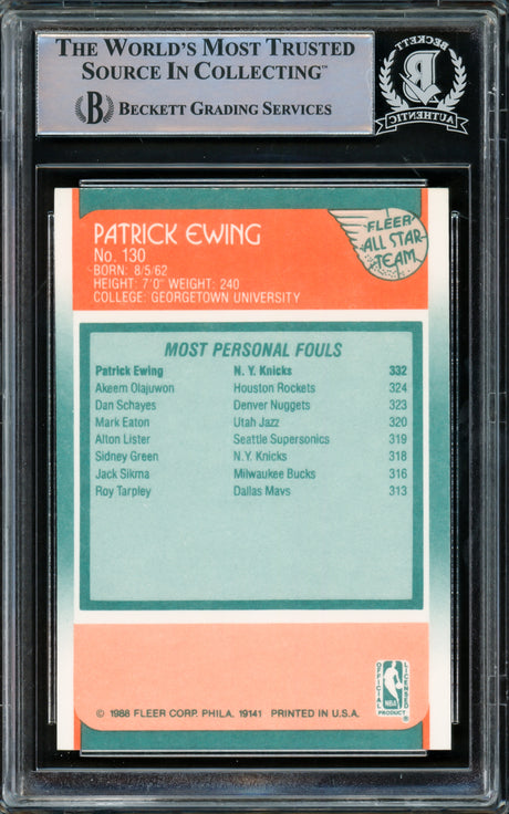Patrick Ewing Autographed 1988-89 Fleer Card #130 New York Knicks Beckett BAS #15779712
