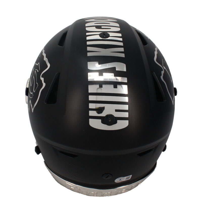 Patrick Mahomes Autographed Kansas City Chiefs Matte Black/Silver Chrome Chiefs Kingdom Authentic Speedflex Helmet Beckett Witnessed