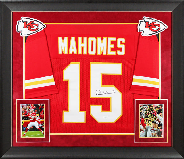 Own a piece of football history with this Autographed Red Pro-Style Framed Jersey, personally signed by Patrick Mahomes, the superstar quarterback of the Kansas City Chiefs. A must-have for serious collectors and devoted Chiefs fans, this framed jersey is a stunning tribute to one of the game's most electrifying players. Each jersey is 100% authentic, verified by a JSA Certificate of Authenticity (COA) and hologram. Whether you're showcasing it in your fan cave or adding it to a growing collection, this framed piece is sure to impress.