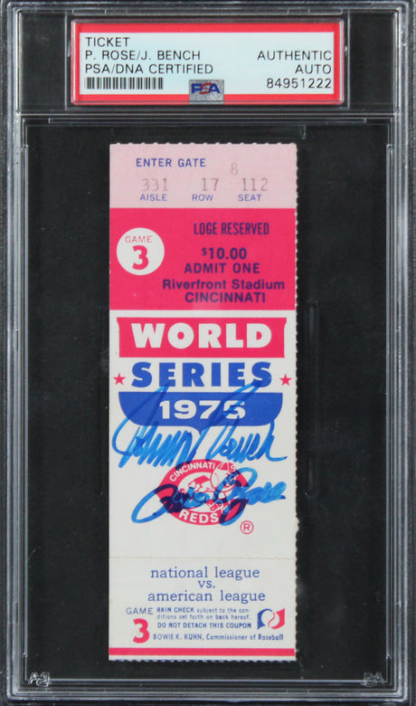 Pete Rose & Johnny Bench Signed World Series 1975 Game 3 Ticket Stub PSA Slabbed