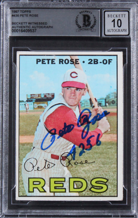 Reds Pete Rose "4256" Authentic Signed 1967 Topps #430 Card Auto 10! BAS Slabbed