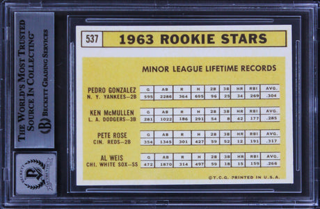 Reds Pete Rose "Charlie Hustle" Signed 1963 RC Reprint Card Auto 10! BAS Slabbed