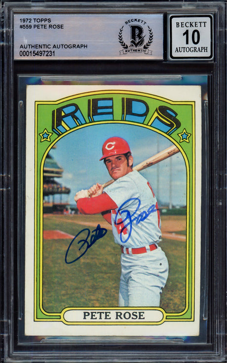Reds Pete Rose "4256" Signed 1970 Topps #458 Card Auto 10! BAS Slabbed 6