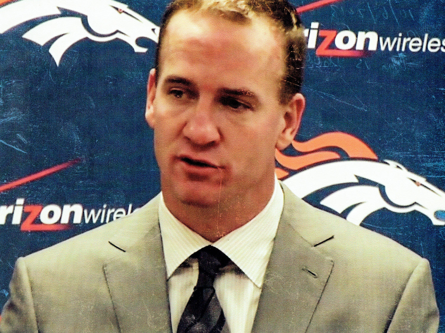 Broncos Peyton Manning '13 Press Conf Worn Zegna Custom Dress Shirt Photo Match