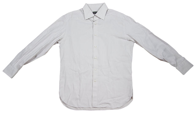 This Ermenegildo Zegna SU MISURA dress shirt is a rare piece of sports history, photo-matched to confirm that Peyton Manning wore it during his October 6, 2013, post-game press conference following the Denver Broncos' thrilling 51-48 victory over the Dallas Cowboys. That game stands as one of the most legendary offensive duels in NFL history, with both teams combining for over 1,000 yards of total offense and 99 points.