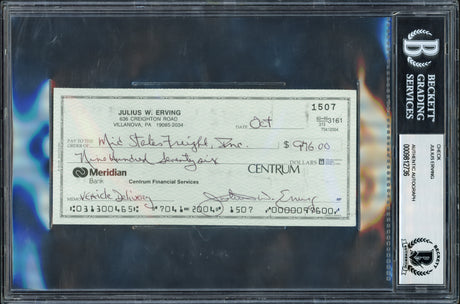 Julius Dr. J Erving Autographed 3x6 Check Philadelphia 76ers Beckett BAS #9812736