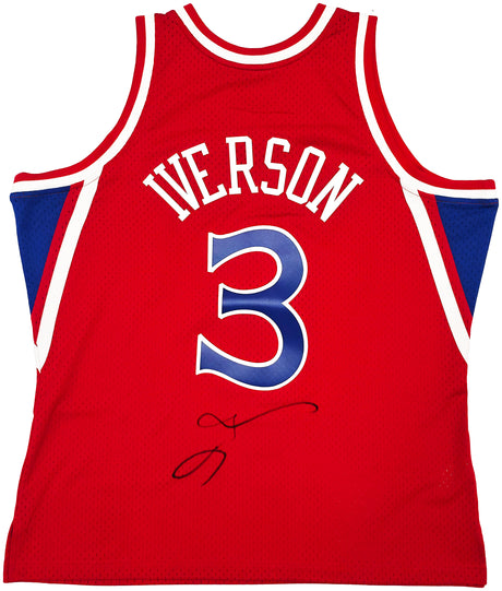 Allen Iverson Signed Red With Blue Numbers Custom Basketball Jersey - (JSA)