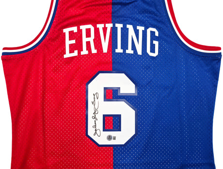 Philadelphia 76ers Julius "Dr. J" Erving Autographed Red Jersey Beckett BAS Witness Stock #253704