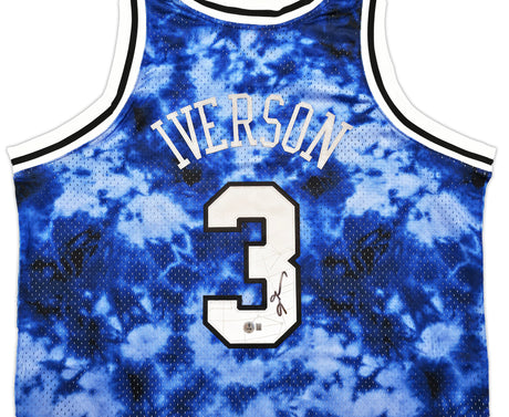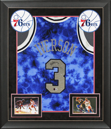 76ers Allen Iverson Signed Blue Galaxy M&N 96-97 HWC Swingman Framed Jersey BAS