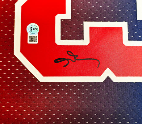 Philadelphia 76ers Moses Malone Autographed Framed Red Jersey "HOF 2001" Beckett BAS QR #BS30061