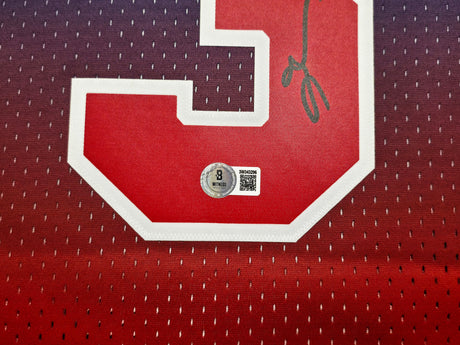 76ers Allen Iverson Signed Red 75th Ann M&N 96-97 HWC Swingman Framed Jersey BAS