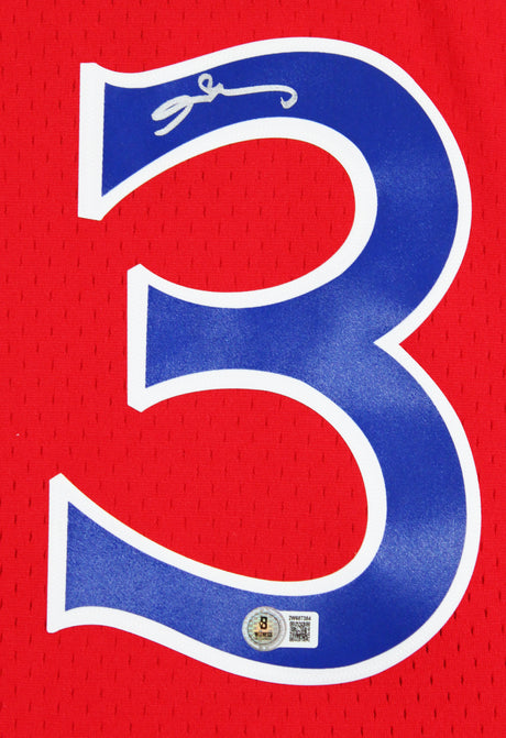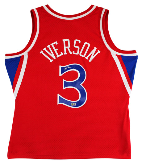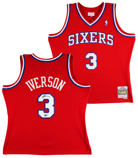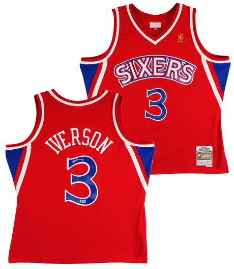 76ers Allen Iverson Signed Red 2002-03 M&N HWC Swingman Jersey BAS Witnessed