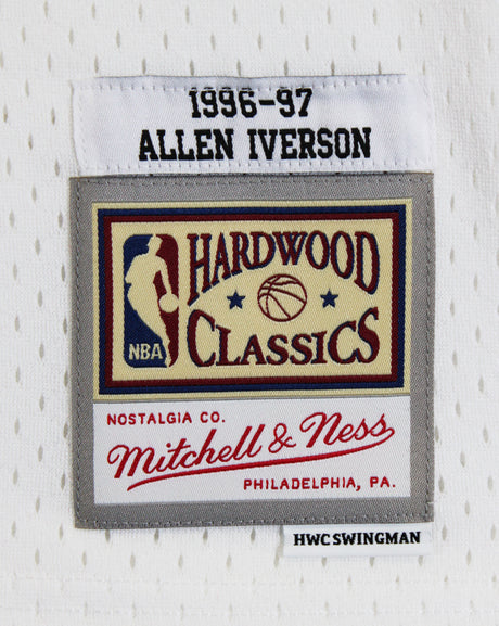 76ers Allen Iverson Signed White 1996-97 M&N HWC Swingman Jersey BAS Witnessed