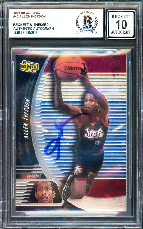 76ers Allen Iverson Signed 2000 Topps Gold Label #3 Card Auto 10! BAS Slabbed