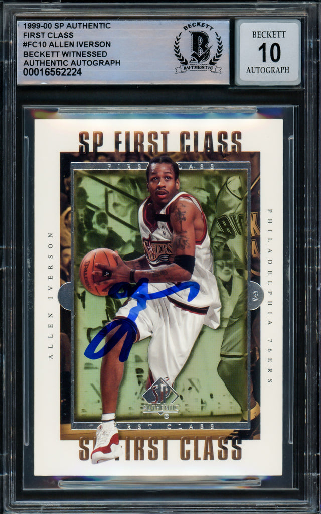 Allen Iverson Autographed 1999-00 SP Authentic First Class Card #FC10 Philadelphia 76ers Auto Grade Gem Mint 10 Beckett BAS Witnessed #16562224