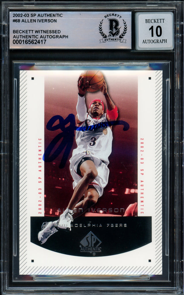 Allen Iverson Autographed 2002-03 SP Authentic Card #68 Philadelphia 76ers Auto Grade Gem Mint 10 Beckett BAS Witnessed Stock #233492
