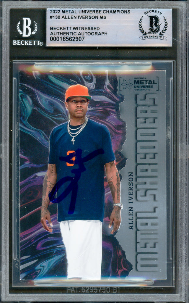 Allen Iverson Autographed 2022 Metal Universe Champions Card #130 Philadelphia 76ers Beckett BAS Witnessed #16562907