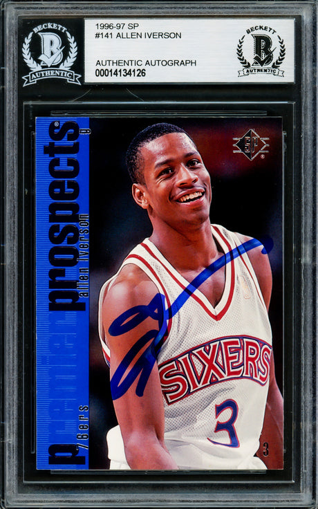 76ers Allen Iverson Signed 2013 SP Authentic #3 Card Auto 10! BAS Slabbed